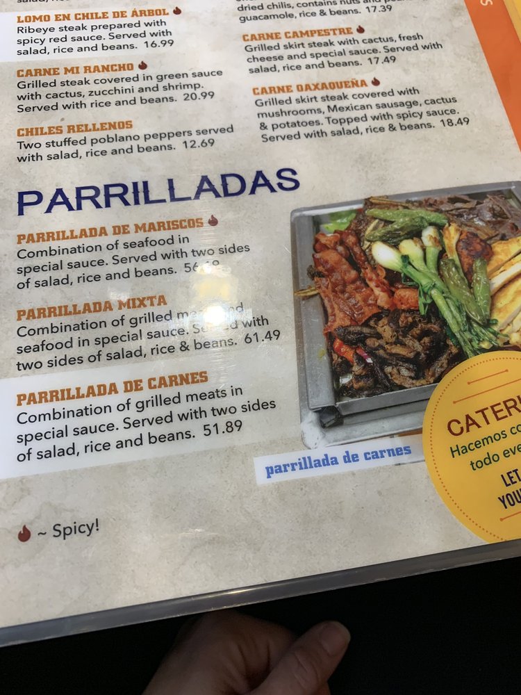 grilled skirt steak, cheese enchilada covered with mole sauce plus guacamole